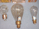 | 展示物1 「電球その1」 【経済学部:商品資料館】 左から、交流タングステン アークランプ 瓦斯入電球 サンランプ 電球(HYLO):アメリカ産 |