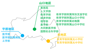 【展示品】 山口大学は、9学部8研究科からなる総合大学です。吉田(山口市)、常盤、小串(宇部市)の3キャンパスで、1万人を超える学生が学んでいます。