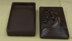 江戸時代以降、下関は「和硯」の産地として全国的に知られてきました。下関で採れる良質な紫金石は、献上品の硯の原料として多く利用・加工されてきたのです。明治初期には下関市内に約20軒の硯屋がありましたが、現在は赤間関硯本家「玉弘堂」1軒になってしまいました。本展示では、江戸期の硯に関する言説の紹介をはじめ、「玉弘堂」に伝わる硯の作例やデザインの工夫を通じて、現代につながる赤間関硯の足跡とデザインについて考えたいと思います。