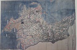 慶長8(1603)年に徳川家康は江戸幕府を開設すると翌9年に慶長国絵図の提出を各国の大名に命じた。本図はその控えで宇部市立図書館附属郷土資料館に所蔵されている。当時の町や村、道路などの地理情報を知りえる貴重な史料である。本図はその複製品である(国重要文化財)。