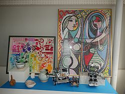それに基づいて、本学児童教育学科の展示物として、学生が授業で制作した絵画や工芸品を選んだ。近い将来教壇に立って教えることになる学生たちの豊かで細やかセンスをみてほしい。心温まる作品群である。