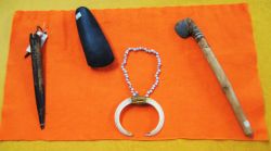 桜圃寺内文庫の中には、時として不思議なものを発見することがあります。本来は学内の他の施設で保管されるものだと思われますが、収納するスペースの関係もあり、文庫に置かれたものと推察されます。この収蔵品は、民族学の教材として使われたものではないかと思われます。
